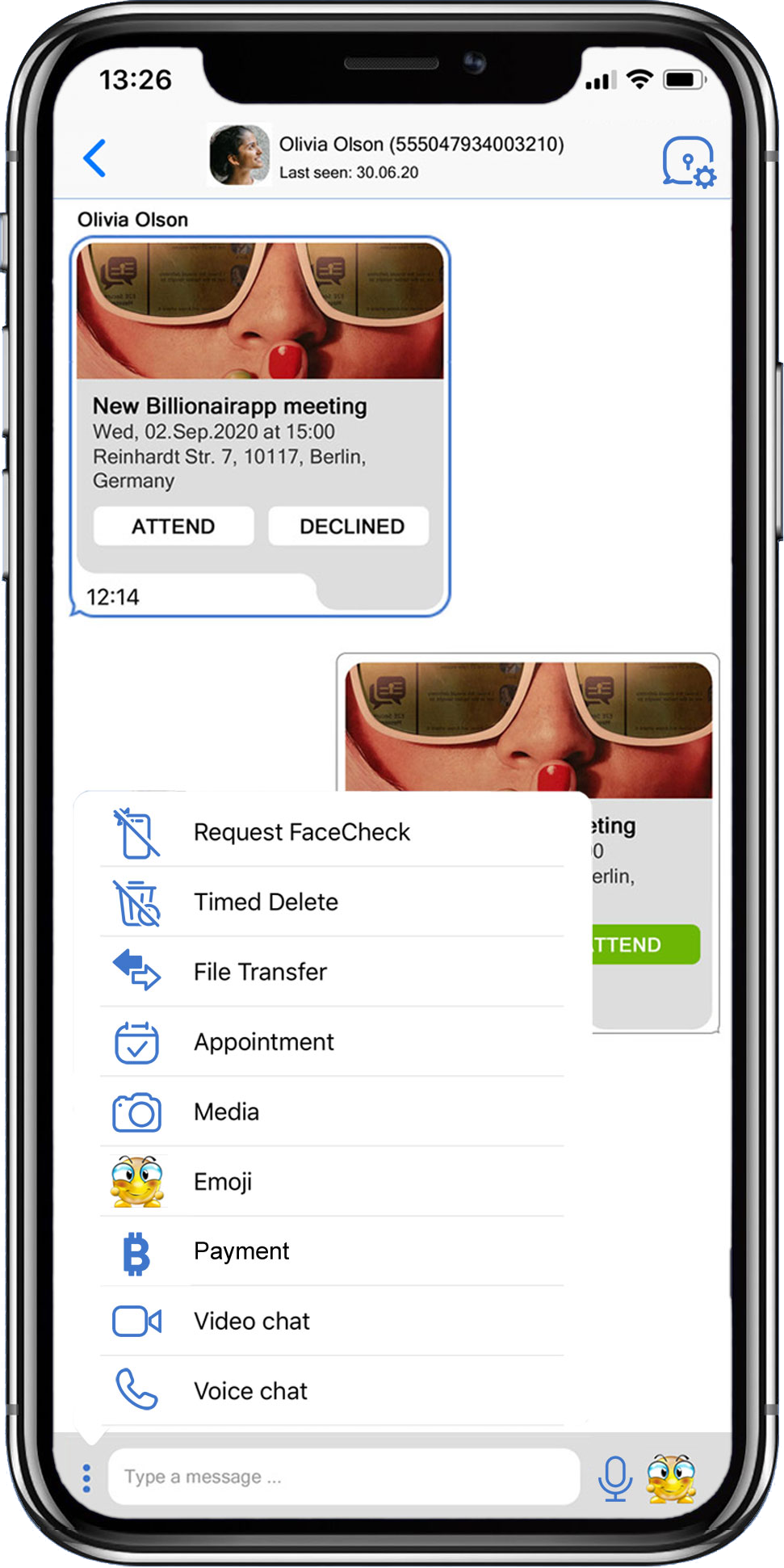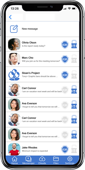 - Select “E2E Secured Messenger” icon in centre of 1502 menu